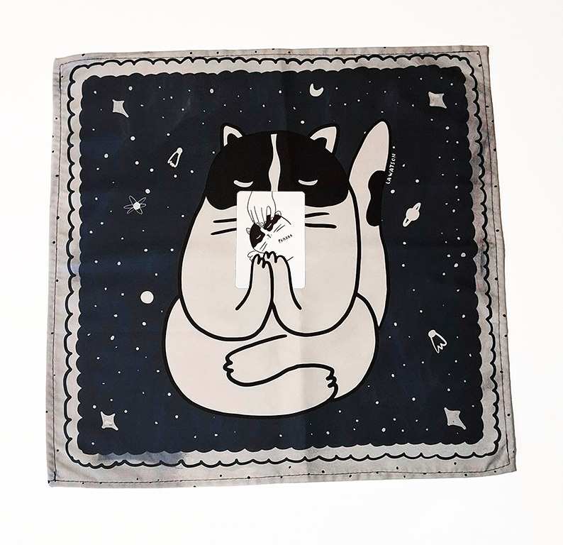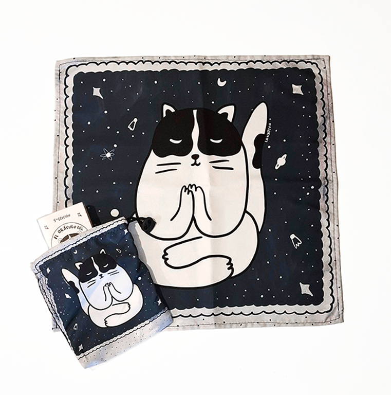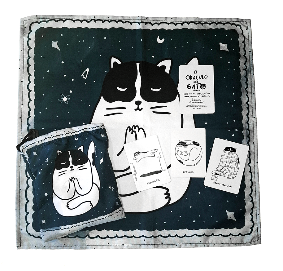 El oráculo del gato es un Mazo de 59 cartas (+1 de presentación) que intenta responder a algunas preguntas cruciales de la vida. De manera muy sencilla y objetiva, gatito te dará una sabia respuesta. Viene acompañado con su propio paño de 42 x 42 confeccionado en microfibra. Mas una la bolsita haciendo juego donde podras guardar el mazo y el propio paño.
